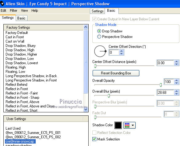 Effetti>Plugins>Alien Skin Eye Candy 5 Impact - Perspective Shadow, con i settaggi precedenti.