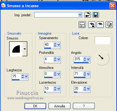 Effetti>Effetti 3D>Smusso a incasso, con i settaggi precedenti.