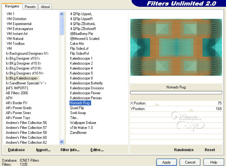 19. Effetti>Plugins>Filters Unlimited 2.0 - &<Bkg Kaleidoscope - Nomads rug.