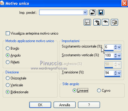 Effetti>Effetti di immagine>Motivo unico, con i settaggi standard.