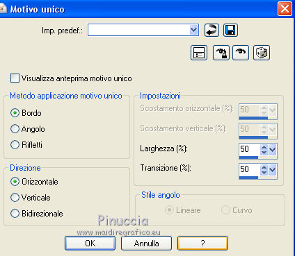 6. Effetti>Effetti di immagine>Motivo unico, con i settaggi standard.