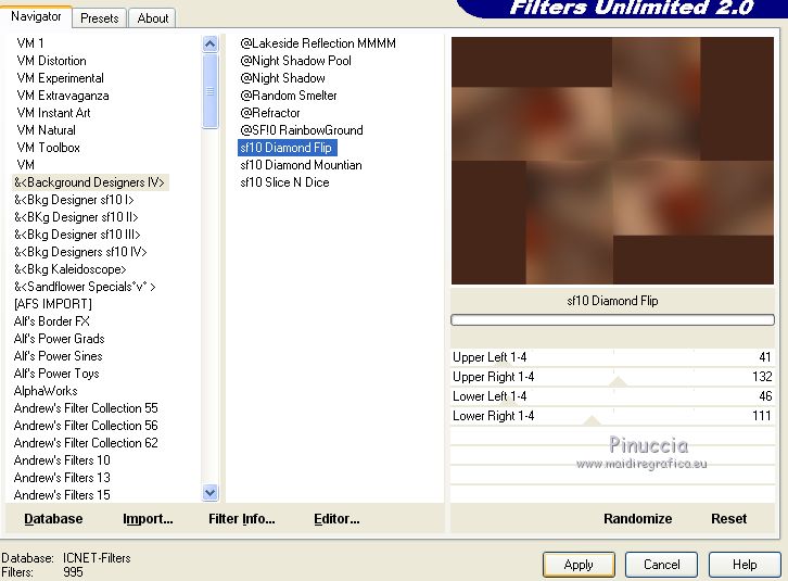 7. Effetti>Plugins>Filters Unlimited 2.0 - &<Background Designers IV> - sf10 Diamond Flip