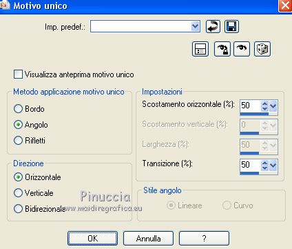 13. Effetti>Effetti di immagine>Motivo unico, con i settaggi precedenti.