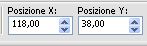 e imposta Posizione X: 118,00 e Posizione Y: 38,00.