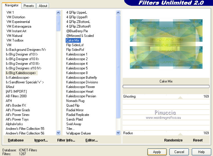 27. Effets>Modules Externes>Filters Unlimited 2.0 - &<bkg kaleidoscope> - Cake Mix,