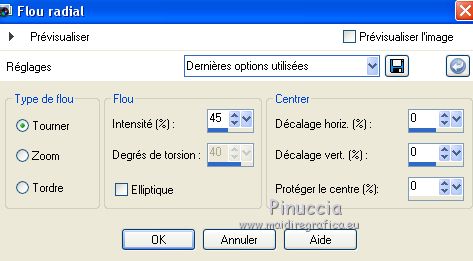 Ce tutoriel a été créé avec CorelX6 et traduit avec CorelX12, mais il peut également être exécuté avec les autres versions. Suivant la version utilisée, vous pouvez obtenir des résultats différents. Depuis la version X4, la fonction Image>Miroir a été remplacée par Image>Renverser horizontalement, et Image>Renverser avec Image>Renverser verticalement. Dans les versions X5 et X6, les fonctions ont été améliorées par la mise à disposition du menu Objets. Avec la nouvelle version X7, nous avons encore Image>Miroir et Image>Renverser/Retourner, mais avec nouvelles différences. Voir les détails à ce sujet ici Certaines dénominations ont changées entre les versions de PSP. Les plus frequentes dénominations utilisées: ![]() Traduction en italien ici Vos versions ici Nécessaire pour réaliser ce tutoriel: Matériel ici Pour les tubes merci Gabry et kitty Modules Externes: consulter, si nécessaire, ma section des filtres ici Filters Unlimited 2.0 ici Alien Skin Eye Candy 5 Impact - Perspective Shadow, Backlight, Extrude ici Mehdi - Weaver ici Mehdi - Kaleidoscope 2.1 ici Simple ici Simple (bonus) ici Filtres VM Natural et Mocks peuvent être utilisés seuls ou importés dans Filters Unlimited. voir comment le faire ici). Si un filtre est fourni avec cette icône, ![]() en fonction des couleurs utilisées, vous pouvez changer le mode mélange et l'opacité des calques. Placer les presets En cliquant sur le preset une ou deux fois (selon vos réglages) automatiquement il se placera directement dans le dossier Settings de Alien Skin Eye Candy. pourquoi un ou deux clic voir ici Placer les sélections dans le dossier Sélections. 1. Ouvrir une nouvelle image transparente 650 x 500 pixels. 2. Placer en avant plan la couleur claire #f8b80e, et en arrière plan la couleur foncée #210706. ![]() Remplir l'image transparente avec la couleur d'avant plan.3. Calques>Nouveau calque raster. Sélections>Sélectionner tout. Ouvrir le tube Gabry-woman 928 - Édition>Copier. minimiser le tube; on va s'en servir plus tard Revenir sur votre travail et Édition>Coller dans la sélection. Sélections>Désélectioner tout. 4. Effets>Effets d'image>Mosaïque sans jointures. ![]() 5. Réglage>Flou>Flou radial. ![]() 6. Calques>Fusionner>Fusionner le calque de dessous. 7. Effets>Effets d'image>Mosaïque sans jointures, comme précédemment. 8. Effets>Modules Externes>Mehdi - Weaver. ![]() 9. Calques>Dupliquer. Effets>Modules Externes>Mehdi - Kaleidoscope 2.1. ![]() 10. Placer le calque en mode Lumière douce. 11. Calques>Fusionner>Fusionner le calque de dessous. 12. Calques>Dupliquer. Image>Renverser. Image>Miroir. Réduire l'opacité de ce calque à 50%. 13. Image>Ajouter des bordures, symétrique décoché, couleur d'avant plan. ![]() 14. Sélections>Charger/Enregistrer une sélection>Charger à partir du disque. Chercher et charger la sélection brenna-1-cre@nnie. ![]() Sélections>Transformer la sélection en calque. Sélections>Désélectionner tout. 15. Effets>Effets d'image>Décalage. ![]() 16. Calques>Dupliquer. Image>Miroir. Calques>Fusionner>Fusionner le calque de dessous. 17. Calques>Dupliquer. Effets>Effets d'image>Mosaïque sans jointures, par défaut. ![]() 18. Calques>Fusionner>Fusionner le calque de dessous. 19. Sélections>Charger/Enregistrer une sélection>Charger à partir du disque. Chercher et charger la sélection brenna-2-cre@nnie. ![]() 20. Calques>Nouveau calque raster. Remplir la sélection avec la couleur d'arrière plan.Sélections>Désélectionner tout. 21. Effets>Modules Externes>Simple - Top Left Mirror. 22. Effets>Effets de textures>Stores, couleur d'avant plan. ![]() 22. Calques>Dupliquer. Effets>Modules Externes>Simple - Left Right Wrap. 23. Réglage>Flou>Moyen. ![]() 24. Image>Ajouter des bordures, symétrique décoché, couleur d'arrière plan. ![]() 25. Calques>Dupliquer. Effets>Modules Externes>Simple - Centre Tile. 26. Placer le calque en mode Fondu et réduire l'opacité à 50%. ![]() 27. Calques>Fusionner>Fusionner le calque de dessous. 28. Effets>Modules Externes>Simple - Left Right Wrap. 29. Image>Ajouter des bordures, comme précédemment. ![]() 30. Effets>Effets d'image>Mosaïque sans jointures. ![]() 31. Calques>Dupliquer. Effets>Modules Externes>Mura's Meister - Perspective Tiling. ![]() 32. Effets>Effets 3D>Ombre portée, couleur noire. ![]() 33. Vous positionner sur le calque du bas de la pile. Effets>Effets de bords>Éroder. Effets>Effets de bords>Accentuer davantage. Effets>Effets de bords>Accentuer. 34. Activer l'outil Sélection ![]() (peu importe le type de sélection, parce que avec la sélection personnalisée vous obtenez toujours un rectangle), cliquer sur Sélection personnalisée ![]() et setter ces paramètres. ![]() Sélections>Transformer la sélection en calque. 35. Calques>Nouveau calque raster. Ouvrir le tube mds10076_Island, Édition>Copier. Revenir sur votre travail et Édition>Coller dans la sélection. Placer le calque en mode Lumière douce. 36. Calques>Dupliquer. Fermers les calques du bas et du haut de la pile. ![]() Calques>Fusionner>Calques visibles. 37. Effets>Effets 3D>Ombre portée, comme précédemment. 38. Calques>Dupliquer. Sélections>Désélectionner tout. 39. Effets>Modules Externes>Mura's Meister - Perspective Tiling. ![]() 40. Calques>Agencer>Déplacer vers le haut. Calques>Afficher>Tous les calques (pour re-ouvrir les calques fermés). ![]() 41. Vous positionner sur le calque du bas de la pile. Sélection personnalisée ![]() ![]() Sélections>Transformer la sélection en calque. 42. Effets>Modules Externes>Simple - Centre Tile. 43. Sélections>Inverser. Effets>Effets 3D>Ombre portée, comme précédemment. 44. Calques>Nouveau calque raster. Sélections>Charger/Enregistrer une sélection>Charger à partir du disque. Chercher et charger la sélection brenna-3-cre@nnie. ![]() Remplir la sélection avec la couleur d'arrière plan.45. Effets>Modules Externes>Alien Skin Eye Candy 5 Impact - Extrude. sélectionner 