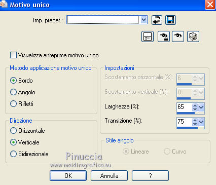 11. Effetti>Effetti di immagine>Motivo unico, con i settaggi standard.