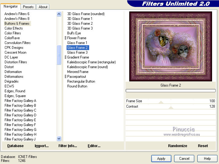 16. Effetti>Plugins>Filters Unlimited 2.0 - Buttons & Frame - Glass Frame 2.