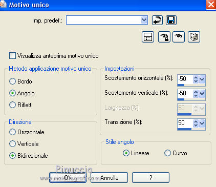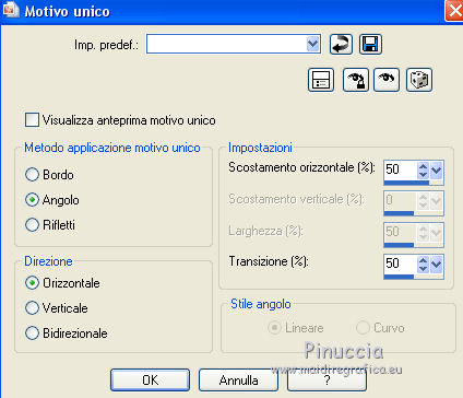 6. Effetti>Effetti di immagine>Motivo unico, con i settaggi standard.