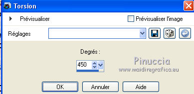 Ce tutoriel a été créé et traduit avec CorelX12, mais peut également être exécuté avec les autres versions. Suivant la version utilisée, vous pouvez obtenir des résultats différents. Depuis la version X4, la fonction Image>Miroir a été remplacée par Image>Renverser horizontalement, et Image>Renverser avec Image>Renverser verticalement. Dans les versions X5 et X6, les fonctions ont été améliorées par la mise à disposition du menu Objets. Avec la nouvelle version X7, nous avons encore Image>Miroir et Image>Renverser/Retourner, mais avec nouvelles différences. Voir les détails à ce sujet ici Certaines dénominations ont changées entre les versions de PSP. Les plus frequentes dénominations utilisées: ![]() Traduction en italien ici Nécessaire pour réaliser ce tutoriel: Matériel ici Le tube utilisé est de Tocha Modules Externes: consulter, si nécessaire, ma section des filtres ici Artistics - Sponge ici Alien Skin Xenofex 2.0 - Constellation ici Animation Shop ici ![]() en fonction des couleurs utilisées, vous pouvez changer le mode mélange et l'opacité des calques. 1. Ouvrir une nouvelle image transparente 650 x 500 pixels. 2. Placer en avant plan la couleur claire #9f1410, et en arrière plan la couleur foncée #350303. ![]() Préparer en avant plan un dégradé de premier plan/arrière plan, style Rectangulaire. ![]() Remplir l'image transparente du dégradé.4. Effets>Modules Externes>Artistics>Sponge. ![]() 5. Effets>Effets de bords>Accentuer davantage. 6. Ouvrir le tube de la femme - Édition>Copier. Revenir sur votre travail et Édition>Coller comme nouveau calque. Image>Redimensionner, à 80%, redimensionner tous les calques décoché. Déplacer le tube en bas sur le bord.7. Effets>Effets 3D>Ombre portée, ombre sur le nouveau calque coché. ![]() Rester positionné sur le calque de l'ombre. Effets>Effets de distorsion>Torsion. ![]() Réduire l'opacité de ce calque à 50%. 8. Vous positionner sur le calque du haut de la pile. Signer votre travail sur un nouveau calque. 9. Ouvrir le texte "tekst present" - Édition>Copier. Revenir sur votre travail et Édition>Coller comme nouveau calque. Déplacer ce texte en haut à droite.Effets>Effets 3D>Ombre portée, comme précédemment. 10. Image>Ajouter des bordures, 1 pixel, symétrique, couleur d'arrière plan. Image>Ajouter des bordures, 2 pixels, symétrique, couleur d'avant plan. Placer en arrière plan Motif et sélectionner un motif or à choix, avec ces paramètres. ![]() Activer l'outil Baguette magique ![]() ![]() et cliquer sur le bord de 2 pixel pour le sélectionner. Remplir la sélection avec le motif or.Sélections>Désélectionner tout. 11. Image>Ajouter des bordures, 1 pixel, symétrique, couleur d'arrière plan. Image>Ajouter des bordures, 20 pixels, symétrique, couleur d'avant plan. Sélectionner le bord de 20 pixels avec la baguette magique ![]() 12. Effets>Modules Externes>Artistics - Sponge, comme précédemment. Effets>Effets de bords>Accentuer davantage. Sélections>Désélectionner tout. 13. Image>Ajouter des bordures, 1 pixel, symétrique, couleur d'arrière plan. Image>Ajouter des bordures, 2 pixels, symétrique, couleur d'avant plan. Sélectionner le dernier bord avec la baguette magique ,et remplir avec le motif or.Sélections>Désélectionner tout. 14. Activer l'outil Stylo - style de Ligne Fil barbelé,![]() Inverser les couleurs pour avoir le motif or en avant plan et fermer la couleur d'arrière plan. 15. Tracer des lignes - voir mon exemple - une fois de le haut vers le bas et une fois du bas vers le haut. Lorsque vous avez terminé: Calques>Convertir en calque raster. 16. Sélections>Sélectionner tout. Sélections>Flottante. Sélections>Statique. 17. Effets>Effets 3D>Ombre portée. ![]() Garder sélectionné. 18. Effets>Modules Externes>Alien Skin Xenofex 2.0 - Constellation. ![]() Sélections>Désélectionner tout. 19. &Acute;dition>Copie Spéciale>Copier avec fusion. Ouvrir Animation Shop et Édition>Coller>Coller comme nouvelle animation. Revenir sur PSP. Édition>Annuler Désélectionner tout. Édition>Annuler Constellation. Répéter l'Effet Constellation comme précédemment, mais cliquer une fois sur Random Seed. ![]() Sélections>Désélectionner tout. &Acute;dition>Copie Spéciale>Copier avec fusion. Revenir sur Animation Shop et Édition>Coller>Coller après l'image active. À nouveau dans PSP. Édition>Annuler Désélectionner tout. Édition>Annuler Constellation. Répéter l'Effet Constellation, cliquer sur Random Seed et ok. Sélections>Désélectionner tout. &Acute;dition>Copie Spéciale>Copier avec fusion. Sur Animation Shop et Édition>Coller>Coller après l'image active. Image>Redimensionner, à 500 pixels de largeur, ou à votre convenance. Contrôler le résultat en cliquant sur Visualiser l'animation ![]() et sauvegarder au format gif. L'ancienne version du tutoriel avec un tube de Guismo. ![]() ![]() Si vous avez des problèmes, ou des doutes, ou vous trouvez un link modifié, ou seulement pour me dire que ce tutoriel vous a plu, vous pouvez m'écrire. 11 Décember 2015 |