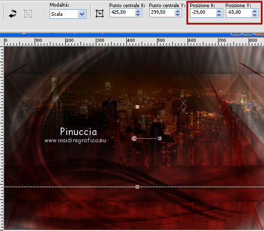 e imposta Posizione X: -29,00 e Posizione Y: -65,00.