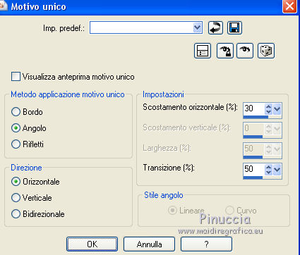 5. Effetti>Effetti di immagine>Motivo unico, con i settaggi standard.
