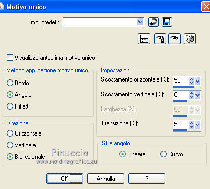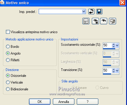 13 Effetti>Effetti di immagine>Motivo unico, con i settaggi precedenti, ma Direzione Orizzontale.