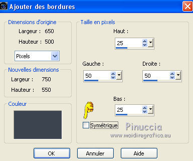 12. Image>Ajouter des bordures, symétrique décoché, couleur d'arrière plan #3c454f.