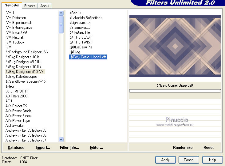 16. Effetti>Plugins>Filters Unlimited 2.0 - &<Bkg Designers sf10IV> - @Easy Corner UpperLeft