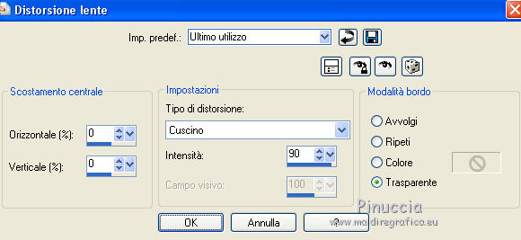61. Effetti>Effetti di distorsione>Distorsione lente, con i settaggi precedenti.