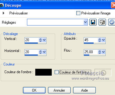 27. Effets>Effets 3D>Ombre portée, avec la couleur d'arrière plan.