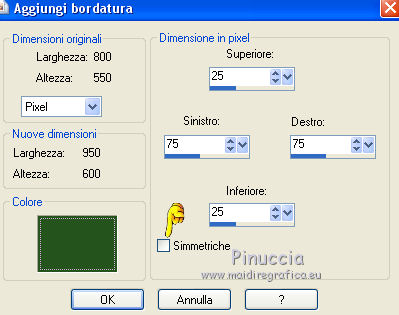 Immagine>Aggiungi bordatura, simmetriche non selezionato, colore di sfondo.