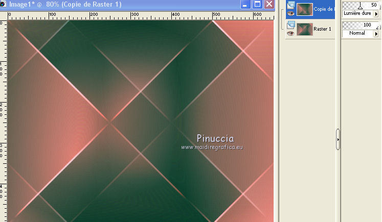 Placer le calque en mode Lumière dure et réduire l'opacité à 50%.