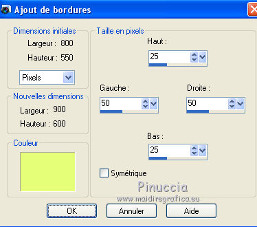7. Image>Ajouter des bordures, symétrique décoché, couleur d'arrière plan.