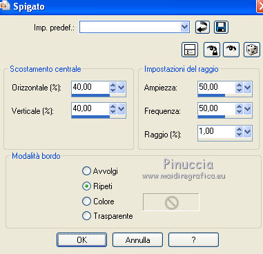 11. Effetti>Plugins>Filters Unlimited - Tiles and Mirror - Radial Tile, con i settaggi standard.