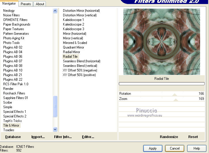 24. Effetti>Plugins>Filters Unlimited - Tile & Mirror - Radial Tile.