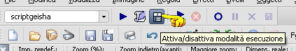 Prima di avviare lo script, clicca sull'icona Attiva modalità di esecuzione, perchè dovrai intervenire nelle azioni riguardanti la maschera e il filtro.