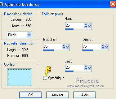 6. Image>Ajouter des bordures, symétrique décoché, couleur d'arrière plan.