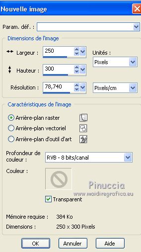 2. Ouvrir une nouvelle image transparente 250 x 300 pixels.