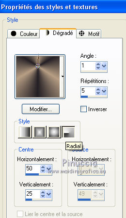 Préparer en avant plan un dégradé de premier plan/arrière plan, style Radial.