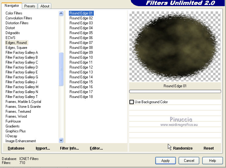 4. Effetti>Plugins>Filters Unlimited 2.0 - Edges,Round - Round Edge 01.