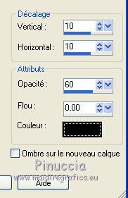 Ce tutoriel a été créé avec CorelX6 et traduit avec CorelX12, mais il peut également être exécuté avec les autres versions. Suivant la version utilisée, vous pouvez obtenir des résultats différents. Depuis la version X4, la fonction Image>Miroir a été remplacée par Image>Renverser horizontalement, et Image>Renverser avec Image>Renverser verticalement. Dans les versions X5 et X6, les fonctions ont été améliorées par la mise à disposition du menu Objets. Avec la nouvelle version X7, nous avons encore Image>Miroir et Image>Renverser/Retourner, mais avec nouvelles différences. Voir les détails à ce sujet ici Certaines dénominations ont changées entre les versions de PSP. Les plus frequentes dénominations utilisées: ![]() Traduction en italien ici Vos versions ici Nécessaire pour réaliser ce tutoriel: Matériel ici Modules Externes. consulter, si nécessaire, ma section de filtre ici Alien Skin Xenofex 2 - Lightning ici Animation Shop ici en fonction des couleurs utilisées, vous pouvez changer le mode mélange et l'opacité des calques. 1. Placer en avant plan la couleur claire #e9eae0, et en arrière plan la couleur foncée #0c0f14. ![]() 2. Ouvrir une nouvelle image transparente 650 x 500 pixels, et remplir avec la couleur d'arrière plan.3. Ouvrir le tube Merel_halloween_achtergrond - Édition>Copier. Revenir sur votre travail et Édition>Coller comme nouveau calque. Image>Redimensionner, à 80%, redimensionner tous les calques décoché. Effets>Effets de bords>Accentuer. 4. Ouvrir le tube Merel_spook_man - Édition>Copier. Revenir sur votre travail et Édition>Coller comme nouveau calque. Déplacer le tube à droite.![]() Réduire l'opacité de ce calque à 56%. 5. Signer votre travail sur un nouveau calque. 6. Image>Ajouter des bordures, 5 pixels, symétrique, couleur d'avant plan. image>Ajouter des bordures, 5 pixels, symétrique, couleur d'arrière plan. 7. Ouvrir le tube mds2440Tot16.02.07 - Édition>Copier. Revenir sur votre travail et Édition>Coller comme nouveau calque. Image>Redimensionner, à 80%, redimensionner tous les calques décoché. Déplacer sur le fantôme.![]() 8. Ouvrir le tube KCVisions-WebOfLies - Édition>Copier. Revenir sur votre travail et Édition>Coller comme nouveau calque. Image>Redimensionner, à 75%, redimensionner tous les calques décoché. Déplacer le tube en bas.9. Effets>Effets 3D>Ombre portée. ![]() 10. Vous positionner sur le calque du bas de la pile. Effets>Modules Externes>Alien Skin Xenofex 2.0 - Lightning. Settings: Old Horror Movie, avec ces paramètres. Tenir enfoncée la touche de la souris sur la petit croix, et positionner le point du début de la foudre sur la zone claire indiquée ci-dessous. ![]() 11. Édition>Copie Spéciale>Copier avec fusion. Ouvrir Animation Shop et Édition>Coller>Coller comme nouvelle animation. 12. Revenir sur PSP. Édition>Annuler Lightning. Répéter l'Effet Lightning, en cliquant une fois sur Random Seed. Réduire l'opacité du calque central à 70%. ![]() vous pouvez rester positionné sur le calque du bas, parce que pour changer les propriétés d'un calque n'est pas nécessaire l'activer. Si vous ne voyez pas le menu des calques, vous devez activer le calque pour en changer les propriétés. Pour visualiser le menu à droite des calques voir qui 13. Édition>Copie Spéciale>Copier avec fusion. Revenir sur Animation Shop et Édition>Coller>Coller après l'image active. 14. À nouveau sur PSP. Édition>Annuler Propriétés du calque. Édition>Annuler Lightning. Répéter l'Effet Lightning, cliquer sur Random Seed et ok. Réduire l'opacitè du calque central à 50%. 15. Édition>Copie Spéciale>Copier avec fusion. Sur Animation Shop: Édition>Coller>Coller après l'image active. 16. Édition>Annuler Propriétés du calque. Édition>Annuler Lightning. Répéter l'Effet Lightning, cliquer sur Random Seed et ok. Réduire l'opacitè du calque central à 30%. 17. Édition>Copie Spéciale>Copier avec fusion. Sur Animation Shop: Édition>Coller>Coller après l'image active. 18. Sur PSP. Édition>Annuler Propriétés du calque. Édition>Annuler Lightning. Répéter l'Effet Lightning, cliquer sur Random Seed et ok. Réduire l'opacitè du calque central à 0, ou fermer le calque. 19. Édition>Copie Spéciale>Copier avec fusion. Sur Animation Shop: Édition>Coller>Coller après l'image active. 20. Édition>Sélectionner tout. Édition>Copier. Cliquer sur la dernière image pour la sélectionner. Édition>Coller>Coller après l'image active. Animation>Inverser les images. 21. Édition>Sélectionner tout. Animation>Propriété de l'image, et règler la durée à 45. ![]() Animation>Redimensionner l'animation - 650 pixels de largeur. 22. Contrôler le résultat en cliquant sur visualiser ![]() et enregistrer en gif. Le tube de cette version est de Krys ![]() ![]() Si vous avez des problèmes, ou des doutes, ou vous trouvez un link modifié, ou seulement pour me dire que ce tutoriel vous a plu, vous pouvez m'écrire. 20 Octobre 2015 |