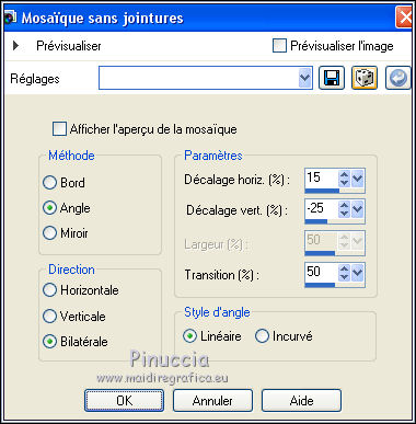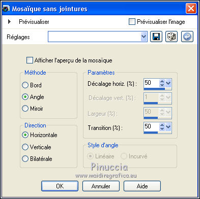 4. Effets>Effets d'image>Mosaïque sans jointures, par défaut.