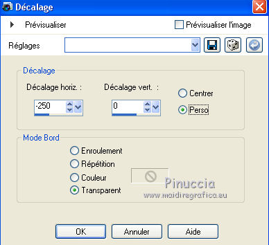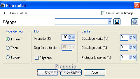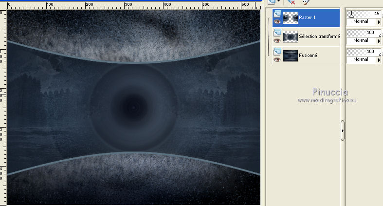 Ce tutoriel a été créé avec CorelX6 et traduit avec CorelX12, mais il peut également être exécuté avec les autres versions. Suivant la version utilisée, vous pouvez obtenir des résultats différents. Depuis la version X4, la fonction Image>Miroir a été remplacée par Image>Renverser horizontalement, et Image>Renverser avec Image>Renverser verticalement. Dans les versions X5 et X6, les fonctions ont été améliorées par la mise à disposition du menu Objets. Avec la nouvelle version X7, nous avons encore Image>Miroir et Image>Renverser/Retourner, mais avec nouvelles différences. Voir les détails à ce sujet ici Certaines dénominations ont changées entre les versions de PSP. Les plus frequentes dénominations utilisées: ![]() Traduction en italien ici Nécessaire pour réaliser ce tutoriel: Matériel ici Modules Externes: consulter, si nécessaire, ma section des filtres ici Alien Skin Eye Candy 5 Nature - Smoke ici Alien Skin Xenofex 2.0 - Lightning ici Xero - Artworx ici MV's Plugins - Panowarp ici Animation Shop qui ![]() en fonction des couleurs utilisées, vous pouvez changer le mode mélange et l'opacité des calques. Dans les plus récentes versions de PSP, vous ne trouvez pas le dégradé d'avant plan/arrière plan ou Corel_06_029. Vous pouvez utiliser le dégradé des versions antérieures. Ici le dossier Dégradés de CorelX. Ouvrez les polices et les minimiser. Vous la trouverez dans la liste des polices disponibles lorsque vous en avez besoin. Avec les nouveaux s.o. ce n'est plus possible. Pour utiliser une police, vous devez le copier dans le dossier Fonts de Windows. Placer le preset En cliquant sur le preset une ou deux fois (selon vos réglages) automatiquement il se placera directement dans le dossier Settings de Alien Skin Eye Candy. pourquoi un ou deux clic voir ici Placer les sélections dans le dossier Sélections. 1. Placer en avant plan la couleur claire #5c7280, et en arrière plan la couleur foncée #000000. ![]() 2. Ouvrir une nouvelle image transparente 650 x 500 pixels, et remplir avec la couleur d'arrière plan.3. Sélections>Sélectionner tout. Calques>Nouveau calque raster. Ouvrir le tube Haunted_MistedByGini_04_21_06 - Édition>Copier. Revenir sur votre travail et Édition>Coller dans la sélection. Image>Redimensionner, à 150%, redimensionner tous les calques décoché. Sélections>Désélectionner tout. 4. Calques>Fusionner>Tous. 5. Réglage>Flou>Flou gaussien - rayon 10. ![]() 6. Effets>Modules Externes>Xero - Artworx. ![]() 7. Calques>Dupliquer. Presser K pour activer l'outil Sélectionner ![]() avec PSP 9 la touche D pour activer l'outil Déformation ![]() en mode Échelle ![]() pousser le noeud central en haut vers le bas jusqu'à 100 pixels, et le noed en bas vers le haut jusqu'à 400 pixels. (si vous ne visualiser pas le règles: Affichage>Règles) ![]() Presser la touche M pour désélectionner l'outil. 8. Effets>Modules Externes>Mv's Plugins - Panowarp. ![]() 9. Effets>Modules Externes>Alien Skin Eye Candy 5 Nature - Smoke. Sélectionner le preset cre@nnie-haunted et ok. ![]() Ci-dessous les paramètres en cas de problèmes avec le preset. ![]() 10. Calques>Dupliquer. Image>Renverser. Réduire l'opacité de ce calque à 65%. Calques>Fusionner>Calques visibles. 11. Sélections>Charger/Enregistrer une sélection>Charger à partir du disque. Chercher et charger la sélection haunted-cre@nnie. ![]() Sélections>Transformer la sélection en calque. 12. Sélections>Modifier>Sélectionner les bordures de la sélection. ![]() Remplir la sélection avec la couleur d'avant plan.13. Sélections>Charger/Enregistrer une sélection>Charger à partir du disque. Charger à nouveau la sélection haunted-cre@nnie. ![]() 13. Réglage>Flou>Flou radial. ![]() 14. Édition>Coller comme nouveau calque (le tube est toujours en mémoire). Effets>Effets d'image>Décalage. ![]() 15. Sélections>Inverser. Presser CANC sur le clavier ![]() Sélections>Désélectionner tout. 16. Calques>Dupliquer. Image>Miroir. Calques>Fusionner>Fusionner le calque de dessous. Réduire l'opacité de ce calque à 15%. ![]() 17. Sélections>Charger/Enregistrer une sélection>Charger à partir du disque. Chercher et charger la sélection haunted-1-cre@nnie. ![]() Presser CANC sur le clavier. Sélections>Désélectionner tout. 18. Calques>Fusionner>Fusionner le calque de dessous. 19. Ouvrir le tube Kat_0641 - Édition>Copier. Revenir sur votre travail et Édition>Coller comme nouveau calque. Image>Redimensionner, à 80%, redimensionner tous les calques décoché. 20. Effets>Effets d'image>Décalage. ![]() Placer le calque en mode Lumière douce. 21. Calques>Agencer>Déplacer vers le bas. Calques>Dupliquer. Image>Miroir. 22. Fermer le calque du haut de lapile. Calques>Fusionner>Calques visibles. 23. Re-ouvrir et vous positionner sur le calque du haut de la pile. Sélections>Sélectionner tout. Sélection>Adapter au support. 24. Sélections>Modifier>Contracter - 5 pixels. Sélections>Inverser. 25. Calques>Nouveau calque raster. Remplir la sélection avec la couleur d'avant plan.Sélections>Désélectionner tout. 26. Signer votre travail sur un nouveau calque. 27. Activer l'outil Texte , font Zombified.![]() En haut au centre, écrire "Haunted". Calques>Convertir en calque raster. Effets>Effets 3D>Ombre portée, couleur blanche. ![]() 28. En bas, cliquer sur le signe "+" ou le signe "-", pour avoir des petits crânes, et avec la police Drac ![]() cliquer sur la "g" minuscule pour avoir des petits fantômes ![]() Calques>Convertir en calque raster. Effets>Effets 3D>Ombre portée, comme précédemment. ![]() 29. Ouvrir "spook" - Édition>Copier. Revenir sur votre travail et Édition>Coller comme nouveau calque. Renommer ce calque "fantome" et placer le calque en mode Éclaircir. ![]() 30. Vous positionner sur le calque du bas de la pile. Effets>Modules Externes>Alien Skin Xenofex 2 - Lightning. ![]() 31. Édition>Copie Spéciale>Copier avec fusion. Ouvrir Animation Shop et Édition>C