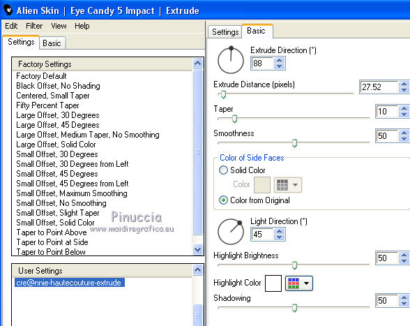 Sélectionner le preset cre@nnie-hautcouture-extrude et ok.