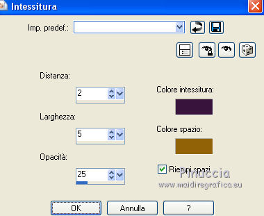 colore intessitura: colore di sfondo; colore spazio: colore di primo piano.