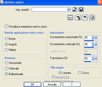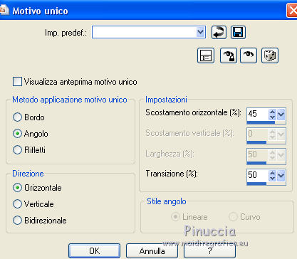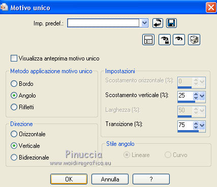 32. Effetti>Effetti di immagine>Motivo unico, con i settaggi precedenti, ma orizzontale selezionato.