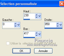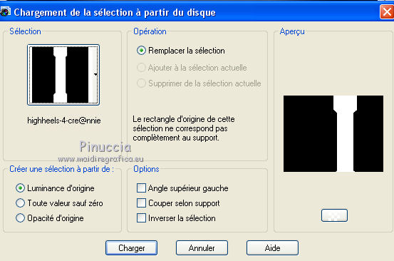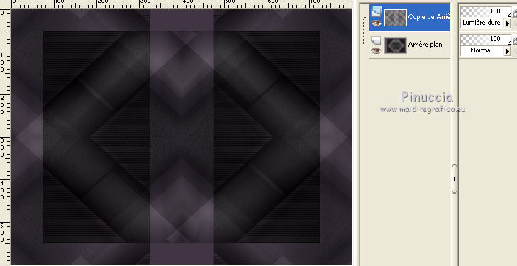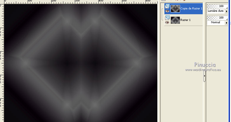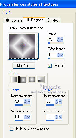 Ce tutoriel a été créé avec CorelX6 et traduit avec CorelX12, mais il peut également être exécuté avec les autres versions. Suivant la version utilisée, vous pouvez obtenir des résultats différents. Depuis la version X4, la fonction Image>Miroir a été remplacée par Image>Renverser horizontalement, et Image>Renverser avec Image>Renverser verticalement. Dans les versions X5 et X6, les fonctions ont été améliorées par la mise à disposition du menu Objets. Avec la nouvelle version X7, nous avons encore Image>Miroir et Image>Renverser/Retourner, mais avec nouvelles différences. Voir les détails à ce sujet ici Certaines dénominations ont changées entre les versions de PSP. Les plus frequentes dénominations utilisées: ![]() Traduction en italien ici Vos versions ici Nécessaire pour réaliser ce tutoriel: Matériel ici Merci pour le tube Annelies Modules Externes: consulter, si nécessaire, ma section des filtres ici Filters Unlimited 2.0 ici &<Bkg Kaleidoscope> - Nomad Rugs (da importare in Unlimited) ici &<Bkg Designersf10I> - Cruncher (da importare in Unlimited) ici °v° Kiwi Oelfilter- Guck Mal ici Simple - Top Left Right ici Simple Left Right Wrap (bonus) ici AAA Frames - Foto Frame ici Filtres Kiwi et Simple peuvent être utilisés seuls ou importés dans Filters Unlimited. voir comment le faire ici). Si un filtre est fourni avec cette icône, ![]() en fonction des couleurs utilisées, vous pouvez changer le mode mélange et l'opacité des calques. La texture Corel_15_044 est standard dans les nouvelles versions de PSP et corresponds à la texture standard des anciennes versions Trottoir. Si vous ne la trouvez pas dans votre PSP, placer la texture fournie dans le dossier Textures. Placer les sélections dans le dossier Sélections. 1. Ouvrir une nouvelle image transparente 650 x 500 pixels. 2. Placer en avant plan la couleur claire #f0f0f0, et en arrière plan la couleur foncée #5a515c. ![]() Préparer en avant plan un dégradé de premier plan/arrière plan, style Rectangulaire. ![]() 3. Remplir l'image transparente du dégradé.4. Calques>Dupliquer. Image>Miroir. Placer le calque en mode Différence et réduire l'opacité à 50%. ![]() Calques>Fusionner>Fusionner le calque de dessous. 5. Effets>Modules Externes>Filters Unlimited 2.0 - °v° kiwi's Oelfilter - Guck mal ![]() 6. Calques>Dupliquer. Image>Renverser. Placer le calque en mode Lumière dure. ![]() Calques>Fusionner>Fusionner le calque de dessous. 7. Sélections>Charger/Enregistrer une sélection>Charger à partir du disque. Chercher et charger la sélection highheels-1-cre@nnie. ![]() Sélections>Transformer la sélection en calque. 8. Effets>Effets de textures>Stores - couleur d'avant plan. ![]() Sélections>Désélectionner tout. 9. Effets>Modules Externes>Simple - Top Left Mirror. Calques>Fusionner>Fusionner le calque de dessous. 10. Sélections>Charger/Enregistrer une sélection>Charger à partir du disque. Chercher et charger la sélection highheels-2-cre@nnie. ![]() Sélections>Transformer la sélection en calque. Sélections>Désélectionner tout. 11. Effets>Modules Externes>Filters Unlimited 2.0 - Special Effects 1 - Shiver. attention, dans le net est partagé une version d'Unlimited qui n'a besoin d'installation, et est composée de files en format .8bf (vous pouvez la télécharger ici) Parfois, les résultats entre les deux versions peuvent être différents, mais il n'y a pas des règles codifiées et on peut réléver ces différences seulement en comparant vos résultats avec les résultats du tutoriel. Ceci est l'un des cas. Avec la version à installer, vous devriez avoir ce résultat. ![]() Avec la version d'Unlimited composée de files en .8bf vous devriez avoir ce-ci. ![]() Et cette-ci est la version que j'ai utilisé pour exécuter le tutoriel, après avoir comparé mes résultats avec les résultats d'Annie. En bas du tutoriel l'exemple avec la version d'Unlimited à installer. 12. Placer le calque en mode Lumière douce. ![]() 13. Calques>Nouveau calque raster. Placer en avant plan la Couleur du début. ![]() 14. Sélections>Charger/Enregistrer une sélection>Charger à partir du disque. Chercher et charger la sélection highheels-3-cre@nnie. ![]() Remplir avec la couleur d'avant plan.Sélections>Désélectionner tout. 15. Réglage>Flou>Flou radial. ![]() 16. Édition>Copier. 17. Effets>Effets de textures>Texture - Sélectionner la texture Trottoir ou Corel_15_044. ![]() Réduire l'opacité de ce calque à 20%. ![]() 18. Image>Ajouter des bordures, symétrique décoché, couleur d'arrière plan. ![]() 19. Calques>Dupliquer. Effets>Modules Externes>Filters Unlimited 2.0 - &<Bkg Kaleidoscope> - Nomads Rug ![]() Placer le calque en mode Lumière dure. ![]() 20. Édition>Coller comme nouveau calque. ![]() 21. Réglage>Flou>Flou radial, comme précédemment. Calques>Fusionner>Calques visibles. 22. Calques>Dupliquer. Image>Redimensionner, à 70%, redimensionner tous les calques décoché. 23. Effets>Effets 3D>Ombre portée, couleur noire. ![]() Calques>Fusionner>Fusionner le calque de dessous. 24. Sélections>Charger/Enregistrer une sélection>Charger à partir du disque. Chercher et charger la sélection highheels-4-cre@nnie. ![]() Sélections>Transformer la sélection en calque. Sélections>Désélectionner tout. 25. Effets>Modules Externes>Simple - Left Right Wrap. 26. Effets>Effets 3D>Ombre portée, comme précèdemment. 27. Image>Ajouter des bordures, 25 pixels, symétrique, couleur d'avant plan. 28. Calques>Nouveau calque raster. Sélections>Charger/Enregistrer une sélection>Charger à partir du disque. Chercher et charger la sélection highheels-5-cre@nnie. ![]() Remplir la sélection avec la couleur d'avant plan.29. Effets>Effets de textures>Texture - Trottoir (Corel_15_44), comme précédemment. Sélections>Désélectionner tout. 30. Effets>Modules Externes>Filters Unlimited 2.0 - &<Bkg Kaleidoscope> - Nomads Rug, par défaut. ![]() Placer le calque en mode Recouvrement. ![