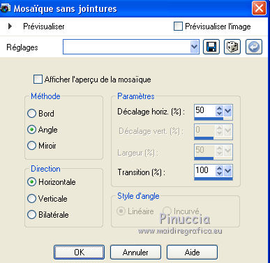 25. Effets>Effets d'image>Mosaïque sans jointures, par défaut.