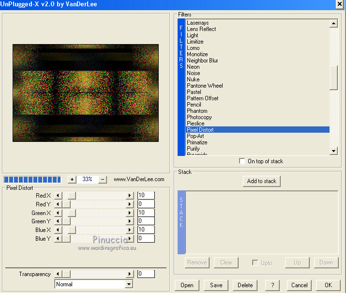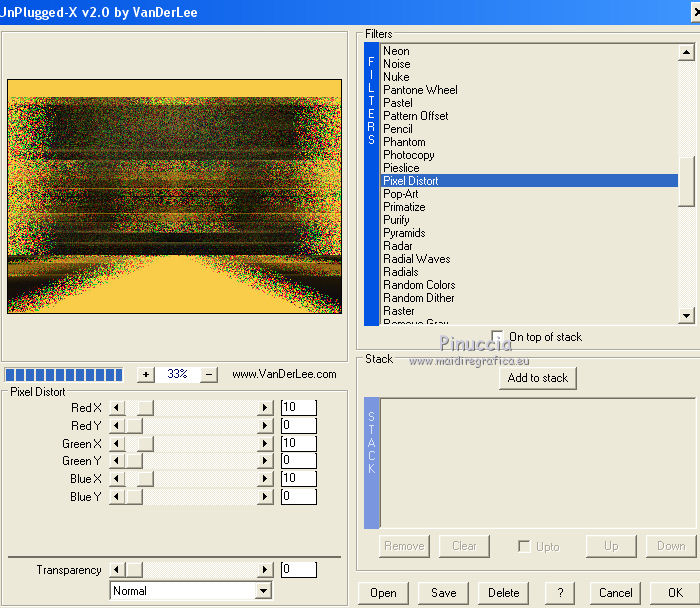 60. Effets>Modules Externes>VanDerLee - Unplugged-X - Pixel Distort comme précédemment.