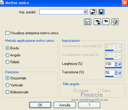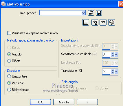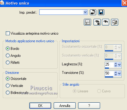 5. Effetti>Effetti di immagine>Motivo unico, con i settaggi standard.