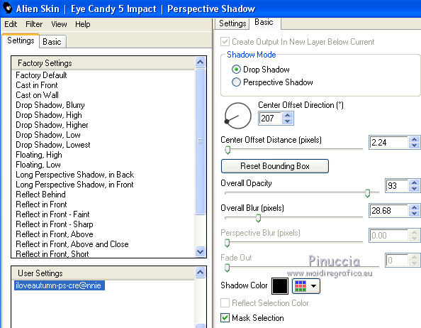 60. Effetti>Plugins>Alien Skin Eye Candy 5 Impact - Perspective Shadow, con i settaggi precedenti.
