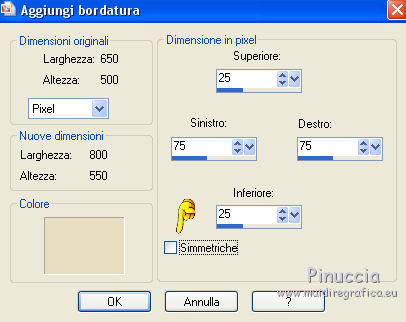 Immagine>Aggiungi bordatura, simmetriche non selezionato, colore di primo piano.