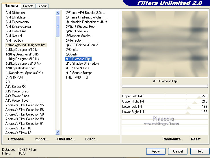 8. Effetti>Plugins>Filters Unlimited 2.0 - &<Background designers IV> - sf Diamond Flip.