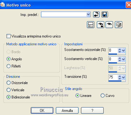 35. Effetti>Effetti di immagine>Motivo unico, con i settaggi standard.