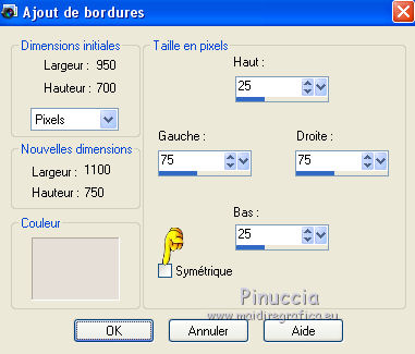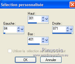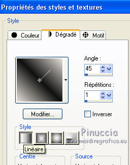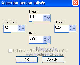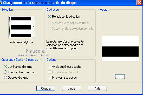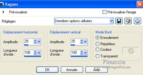 Ce tutoriel a été créé avec CorelX6 et traduit avec CorelX12, mais il peut également être exécuté avec les autres versions. Suivant la version utilisée, vous pouvez obtenir des résultats différents. Depuis la version X4, la fonction Image>Miroir a été remplacée par Image>Renverser horizontalement, et Image>Renverser avec Image>Renverser verticalement. Dans les versions X5 et X6, les fonctions ont été améliorées par la mise à disposition du menu Objets. Avec la nouvelle version X7, nous avons encore Image>Miroir et Image>Renverser/Retourner, mais avec nouvelles différences. Voir les détails à ce sujet ici Certaines dénominations ont changées entre les versions de PSP. Les plus frequentes dénominations utilisées: ![]() Traduction en italien ici Vos versions ici Nécessaire pour réaliser ce tutoriel: Matériel ici Merci: pour le tube Syl et pour les masques Narah Modules Externes: consulter, si nécessaire, ma section des filtres ici Filters Unlimited 2.0 ici Simple - Centre Tile ici Toadies - Weaver, Ommadawn ici Filtres Simple et Toadies peuvent être utilisés seuls ou importés dans Filters Unlimited. voir comment le faire ici). Si un filtre est fourni avec cette icône, ![]() en fonction des couleurs utilisées, vous pouvez changer le mode mélange et l'opacité des calques. Placer les sélections dans le dossier Sélections. Ouvrir les masques dans PSP et les minimiser avec le reste du matériel. 1. Ouvrir une nouvelle image transparente 650 x 500 pixels. 2. Placer en avant plan la couleur claire #e5dfd8, et en arrière plan la couleur foncée #101010. ![]() Préparer un dégradé de premier plan/arrière plan, style Linéaire. ![]() 3. Remplir l'image transparente du dégradé.4. Effets>Effets de distorsion>Vagues. ![]() 5. Sélections>Sélectionner tout. Image>Ajouter des bordures, 50 pixels, symétrique, couleur d'avant plan. 6. Effets>Effets d'image>Mosaïque sans jointures. ![]() 7. Sélections>Inverser. Sélections>Transformer la sélection en calque. Sélections>Désélectionner tout. 8. Image>Miroir. Placer le calque en mode Lumière dure. Calques>Fusionner>Fusionner le calque de dessous. 9. Calques>Dupliquer. Image>Miroir. 10. Effets>Effets d'image>Mosaïque sans jointures, comme précédemment. 11. Placer le calque en mode Lumière dure. Calques>Fusionner>Fusionner le calque de dessous. 12. Activer l'outil Baguette magique ![]() ![]() et cliquer dans les quatres rectangles blancs pour les sélectionner. ![]() 13. Remplir la sélection avec la couleur d'arrière plan.Sélections>Transformer la sélection en calque. Sélections>Désélectionner tout. 14. Effets>Modules Externes>Toadies - Weaver. ![]() 15. Effets>Effets de distorsion>Vagues, comme précédemment. 16. Calques>Dupliquer. Image>Miroir. Calques>Fusionner>Fusionner le calque de dessous. Placer le calque en mode Lumière douce. 17. Image>Ajouter des bordures, symétrique décoché, couleur d'arrière plan. ![]() 18. Effets>Effets d'image>Mosaïque sans jointures. ![]() 19. Placer en avant plan la Couleur. Calques>Nouveau calque raster. Remplir avec la couleur d'avant plan.20. Calques>Nouveau calque de masque>A partir d'une image. Ouvrir le menu deroulant sous la fenêtre d'origine et vous verrez la liste des images ouvertes. Sélectionner le masque Narah_mask_0619. ![]() Calques>Fusionner>Fusionner le groupe. Placer le calque en mode Éclaircir. 21. Calques>Dupliquer. Image>Miroir. Image>Renverser. 22. Calques>Nouveau calque raster. Activer l'outil Sélection ![]() (peu importe le type de sélection, parce que avec la sélection personnalisée vous obtenez toujours un rectangle), cliquer sur Sélection personnalisée ![]() et setter ces paramètres. ![]() 23. Effets>Effets 3D>Ombre portée, couleur noire. ![]() Sélections>Désélectionner tout. 24. Effets>Modules Externes>Simple - Centre Tile. 25. Sélection personnalisée ![]() ![]() Presser CANC sur le clavier ![]() Sélections>Désélectionner tout. 26. Vous positionner sur le calque du bas de la pile. Calques>Nouveau calque raster. Remplir avec la couleur d'avant plan.27. Calques>Nouveau calque de masque>A partir d'une image. Ouvrir le menu deroulant sous la fenêtre d'origine et vous verrez la liste des images ouvertes. Sélectionner le masque Narah_mask_0493. ![]() Calques>Fusionner>Fusionner le groupe. Réduire l'opacité de ce calque à 65%. 28. Sélections>Charger/Enregistrer une sélection>Charger à partir du disque. Chercher et charger la sélection isittrue-1-cre@nnie. ![]() 29. Effets>Effets de textures>Textile, les deux couleurs: couleurs d'arrière plan. ![]() 30. Sélections>Transformer la sélection en calque. Sélections>Désélectionner tout. 31. Effets>Modules Externes>Toadies - Ommadawn. ![]() 32. Image>Renverser. Effets>Effets de bords>Eroder. 33. Édition>Copie Spéciale>Copier avec fusion. 34. Image>Ajouter des bordures, symétrique décoché, couleurs d'avant plan. ![]() 35. Effets>Effets d'image>Mosaïque sans jointures, par défaut. ![]() 36. Sélections>Charger/Enregistrer une sélection>Charger à partir du disque. Chercher et charger la sélection isittrue-2-cre@nnie. ![]() 37. Réglage>Flou>Flou gaussien - rayon 5. ![]() 38. Effets>Effets de textures>Stores, couleur d'arrière plan. ![]() 39. Sélections>Inverser. Effets>Effets 3D>Ombre portée, comme précédemment. Sélections>Désélectionner tout. 40. Édition>Coller comme nouveau calque. 41. Effets>Effets 3D>Ombre portée, couleur noire. ![]() 42. Vous positionner sur le calque du bas de la pile. Sélection personnalisée ![]() ![]() 43. Sélections>Transformer la sélection en calque. Sélections>Désélectionner tout. Calques>Agencer>Placer en haut de la pile. 44. Effets>Effets géométriques>Perspective verticale. ![]() 45. Sélections>Charger/Enregistrer une sélection>Charger à partir du disque. Chercher et charger la sélection isittrue-3-cre@nnie. ![]() Presser CANC sur le clavier. Sélections>Désélectionner tout. Réduire l'opacité de ce cal