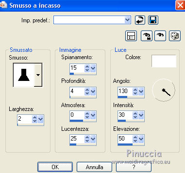 15. Effetti>Effetti 3D>Smusso a incasso, con i settaggi precedenti.