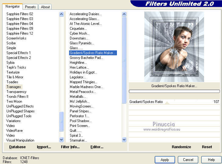 17. Effetti>Plugins>Filters Unlimited 2.0 - Tramages - Gradient spokes/ratio.