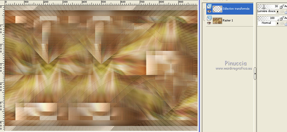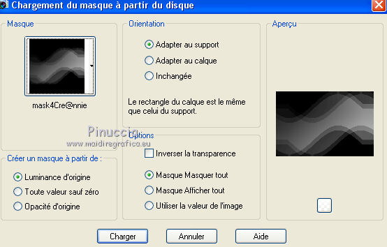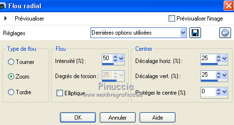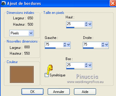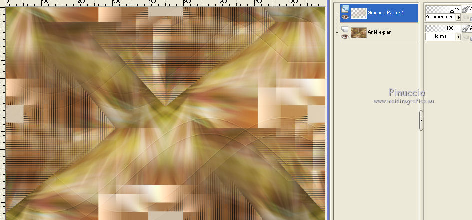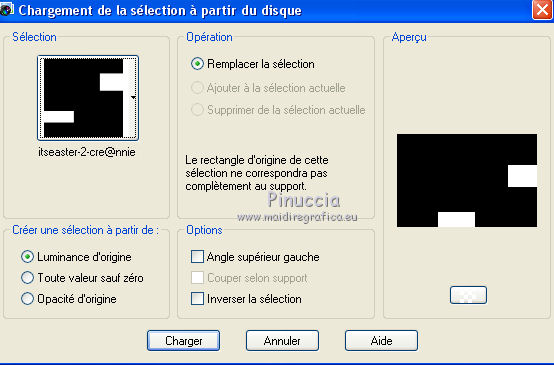 Ce tutoriel a été créé avec CorelX6 et traduit avec CorelX12, mais il peut également être exécuté avec les autres versions. Suivant la version utilisée, vous pouvez obtenir des résultats différents. Depuis la version X4, la fonction Image>Miroir a été remplacée par Image>Renverser horizontalement, et Image>Renverser avec Image>Renverser verticalement. Dans les versions X5 et X6, les fonctions ont été améliorées par la mise à disposition du menu Objets. Avec la nouvelle version X7, nous avons encore Image>Miroir et Image>Renverser/Retourner, mais avec nouvelles différences. Voir les détails à ce sujet ici Certaines dénominations ont changées entre les versions de PSP. Les plus frequentes dénominations utilisées: ![]() Traduction en italien ici Vos versions ici Nécessaire pour réaliser ce tutoriel: Matériel ici Pour le tube merci Kitty . Les autres tubes sont de Annie Modules Externes: consulter, si nécessaire, ma section des filtres ici Filters Unlimited 2.0 ici AP Lines - Lines SilverLining ici Tramages - Perforator 1, Tow the line ici Mura's Meister - Perspective Tiling ici Filtres Tramages peuvent être utilisés seuls ou importés dans Filters Unlimited. voir comment le faire ici). Si un filtre est fourni avec cette icône, ![]() en fonction des couleurs utilisées, vous pouvez changer le mode mélange et l'opacité des calques. Placer le masque dans le dossier Masques. Placer les sélections dans le dossier Sélections. 1. Ouvrir une nouvelle image transparente 650 x 500 pixels. 2. Placer en avant plan la couleur claire #cdbda7, et en arrière plan la couleur foncée #9a7048. ![]() 3. Remplir l'image transparente avec la couleur d'arrière plan.4. Sélections>Sélectionner tout. Ouvrir le tube eierdoos-bloemen, Édition>Copier. Revenir sur votre travail et Édition>Coller dans la sélection. Sélections>Désélectionner tout. 5. Effets>Effets d'image>Mosaïque sans jointures, par défaut. ![]() 6. Réglage>Flou>Flou radial. ![]() 7. Calques>Dupliquer. Image>Miroir. Placer le calque en mode Lumière dure. 8. Calques>Fusionner>Fusionner le calque de dessous. 9. Image>Redimensionner, à 80%, redimensionner tous les calques décoché. 10. Image>Renverser. 11. Effets>Modules Externes>Tramages - Perforator 1. ![]() cet effet est également dans le filtre Factory Gallery E. Le premier filtre ajouté aux Emplacements de Fichiers empêchera l'utilisation de l'Effet dans le deuxième filtre ajouté. Si vous ne trouvez pas l'effet dans Tramages, vous devez supprimer le filtre Factory Gallery des l'Emplacements des fichiers, ou importer l'effet de Tramages dans Unlimited 12. Calques>Fusionner>Fusionner le calque de dessous. 13. Image>Ajouter des bordures, symétrique décoché, couleur d'arrière plan. ![]() 14. Effets>Effets d'image>Mosaïque sans jointures, par défaut. ![]() 15. Sélections>Charger/Enregistrer une sélection>Charger à partir du disque. Chercher et charger la sélection itseaster-1-cre@nnie. ![]() Sélections>Transformer la sélection en calque. 16. Effets>Modules Externes>Tramages - Tow the line. ![]() Sélections>Désélectionner tout. 17. Calques>Dupliquer. 18. Image>Rotation libre - 90 degrés à droite. ![]() 19. Effets>Effets d'image>Décalage. ![]() 20. Calques>Fusionner>Fusionner le calque de dessous. 21. Effets>Effets 3D>Ombre portée, couleur noire. ![]() 22. Effets>Effets d'image>Mosaïque sans jointures, comme précédemment. 23. Image>Ajouter des bordures, symétrique décoché, couleur d'avant plan. ![]() 24. Effets>Effets d'image>Mosaïque sans jointures, comme précédemment. 25. Calques>Nouveau calque raster. Remplir avec la couleur d'avant plan.26. Calques>Charger/Enregistrer un masque>Charger à partir du disque. Chercher et charger le masque mask4-cre@nnie. ![]() Calques>Fusionner>Fusionner le groupe. 27. Effets>Effets de bords>Accentuer. Placer le calque en mode Recouvrement et réduire l'opacité à 75%. ![]() 28. Vous positionner sur le calque du bas de la pile. Sélections>Charger/Enregistrer une sélection>Charger à partir du disque. Chercher et charger la sélection itseaster-2-cre@nnie. ![]() 29. Effets>Modules Externes>AP [Lines] - Lines SilverLining. si vous voulez utiliser AP Innovations - Lines SilverLining le résultat ne change pas ![]() Sélections>Transformer la sélection en calque. 30. Effets>Effets 3D>Ombre portée, comme précédemment. Sélections>Désélectionner tout. 31. Calques>Fusionner>Calques visibles. 32. Calques>Dupliquer. Image>Redimensionner, à 90%, redimensionner tous les calques décoché. 33. Vous positionner sur le calque du bas de la pile. Réglage>Flou>Flou gaussien - rayon 20. ![]() 34. Effets>Modules Externes>AP [Lines] - Lines SilverLining, comme précédemment. 35. Image>Ajouter des bordures, symétrique décoché, comme précédemment. ![]() 36. Effets>Effets d'image>Mosaïque sans jointures. ![]() 37. Activer l'outil Baguette magique ![]() ![]() cliquer sur les bords en haut et en bas pour les sélectionner. 38. Effets>Modules Externes>Tramages - Tow the line, comme précédemment. 39. Effets>Effets 3D>Ombre portée, comme précédemment. 40. Sélections>Transformer la sélection en calque. Sélections>Désélectionner tout. 41. Effets>Effets de distorsion>Coordonnées polaires. ![]() 42. Placer le calque en mode Lumière douce et réduire l'opacité à 30%. ![]() 43. Calques>Fusionner>Fusionner le calque de dessous. 44. Calques>Dupliquer. Effets>Modules Externes>Mura's Meister - Perspective Tiling. ![]() 45. Effets>Effets 3D>Ombre portée, comme précédemment. Édition>Coller comme nouveau calque (le tube eierdoos-bloemen est toujours en mémoire). 46. Image>Redimensionner, à 60%, redimensionner tous les calques décoché. 47. Réglage>Flou>Masque flou. ![]() 48. Image>Miroir. Effets>Effets 3D>Ombre portée, comme précédemment. Déplacer le tube en bas à gauche.![]() 49. Ouvrir le tube bloemstuk-pasen, - Édition>Copier. Revenir sur votre travail et Édition>Coller comme nouve