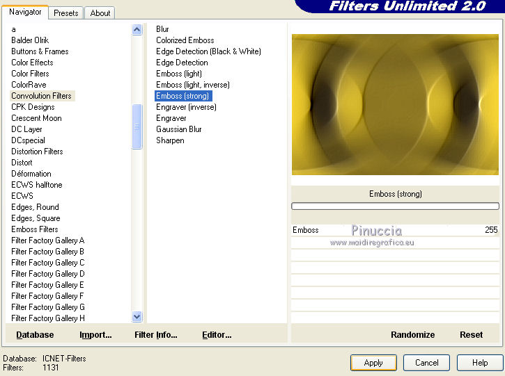 10. Effetti>Plugins>Filters Unlimited 2.0 - Convolution Filters - Emboss (strong)